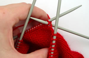 Lyhennetyin kerroksin neulottu sukan kantapää eli tiimalasikantapää |