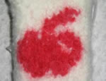 Neulomisen jälkeen pikkuisia mustia ja punaisia karvapalloja