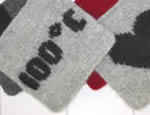 on neulottu paksusta villalangasta ja huovutettu sen jälkeen