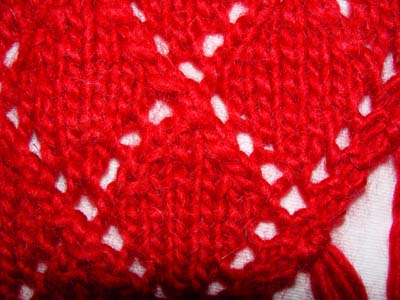 tehty huivi on neulottu samalla ohjeella, mutta puikoilla 7. Vähemmän
