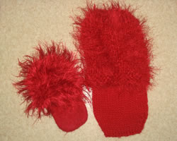 Kuvassa Marjut Katajalan Huopasesta ja Funnysta tehdyt Barbara-tossut