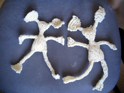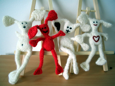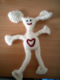 Thuy antoi ystävällisesti Ullalle luvan julkaista ohjeen suomenkielisenä. Pupu on nopeatekoinen, ja lopputulos ihastuttava! Legsin voi tehdä mistä tahansa huopuvasta villalangasta, eikä puikkokoollakaan ole niin väliä. Alkuperäinen ohje on varsin suurpiirteinen, ja siinä on jätetty paljon tilaa omille muokkauksille. Niinpä tämäkin ohje on vain yksi esimerkki, voit halutessasi tehdä pupulle pidemmät jalat, tai vaikka sydämen malliset korvat! Thuyn kotisivut löytyvät täältä: http://www.schmeebot.com/knitting/ Lanka ja langan menekki Esim.