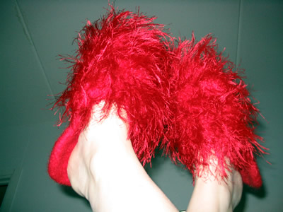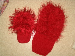 Huovuta tossuja pesukoneessa 40-60 asteessa parin pyyhkeen tai farkkujen kanssa (muista, että Huopanen voi nukata). Käytä hieman pesuainetta, huuhteluainetta ei tarvita. Huom: Huovutin tossuja koko pesuohjelman ajan. Meidän pesukoneessamme tossut eivät huopuneet riittävästi 40 asteessa, vaan huopumiseen tarvittiin 60 astetta. Pesukoneet ovat kuitenkin erilaisia, joten tarkista huopumisen aste välillä ja lopeta huovuttaminen, kun tossut ovat riittävän huopuneet. Pohjan on tarkoitus olla tiivis eikä silmukoiden pitäisi enää erottua toisistaan. Pohjan kahden kerroksen on tarkoituskin huopua kiinni toisiinsa, mutta pörrölanka esti ainakin minulla pohjan ja päällisen huopumisen kiinni toisiinsa. Jos olet epävarma, kiinnitä pohjan ja päällisen väliin esim. muovipussi huovutuksen ajaksi. Viimeistely huovutuksen jälkeenHuovutuksen jälkeen venytä tossut oikeaan muotoon ja anna niiden kuivua ilmavassa paikassa.