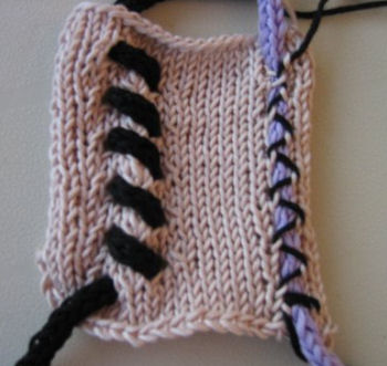 tavoilla neulottua i-cordia voi kiinnittää neuleeseen joko ompelemalla