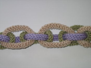 Kun siksakreikäkuvioon pujotetaan kolmen silmukan i-cord,