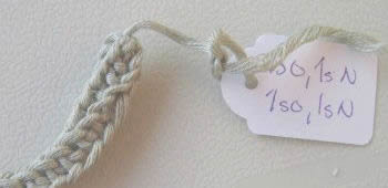 silmukoista 1 o, 1 lk, 1 o. Jatka i-cordina noin 4-5 kerrosta