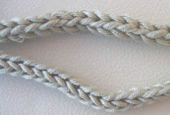 3 silmukkaa leveän i-cordin silmukat on neulottu aina kiertäen