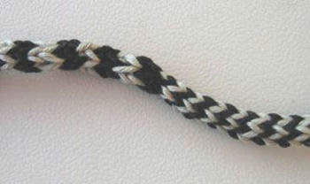 on neljän silmukan i-cord, jossa vuorotellen 1 kerros mustaa