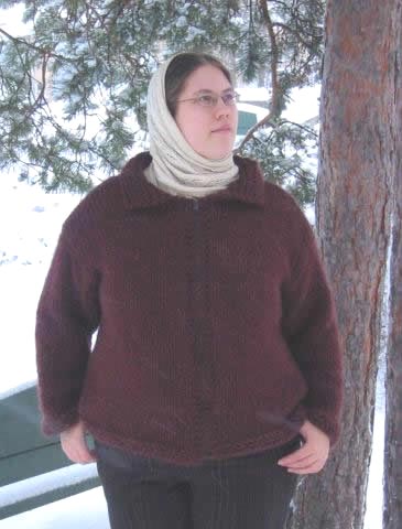 Väljä lämpöinen perusvillatakki syntyi alunperin lämmittämään kantoliinassa matkaavaa talvivauvaa. Siksi takissa on vetoketjukiinnitys ja reilu väljyysvara. Kuten kuvasta näkyy, takkia voi kuitenkin käyttää myös ilman matkustajaa. Jos haluat vähemmän väljän takin, voi t käyttää pienemmän koon silmukkamääriä ja pidentää hihoja vastaavasti. Vetoketjun kiinnittämiseen on vinkkejä Ullassa 03/06. Lanka ja langan menekki Rowan Big Wool (kuvassa ruskeameleerattu, sävy 27), 700 - 800 - 900 g Huom! Mallitakki on neulottu suurimman koon mukaan, pienempien kokojen langanmenekki on arvio. Langan säästämiseksi lankaa on jatkettu kappaleiden keskellä jakamalla lanka ja huovuttamalla säikeitä kevyesti yhteen. Neuletiheys 8,5 s ja 12 krs sileää neuletta = 10 cm Puikot 12 mm tai käsialan mukaan Muut tarvikkeet Ohuempaa vastaavan väristä villalankaa saumojen ompeluun. Koko XS/S - M/L - XL/XXL, kuvattu suurimmassa koossa. OhjeTakakappaleLuo 41 - 49 - 57 s. Neulo 5 kerrosta aina oikein ja aloita sitten sileä neule niin, että neulot ensimmäiseksi oikean kerroksen. Neulo sileää, kunnes kappaleen korkeus on 35 - 37 - 39 cm. Päätä molemmista reunoista kädentietä varten 1x3 s. Jatka sileää neuletta, kunnes kädentien korkeus on 25 - 26 - 27. Päätä työn molemmista reunoista 12 - 15 - 15 s ja jätä keskimmäiset 17 - 19 - 21 s apulangalle odottamaan. Vasen etukappaleLuo 20 - 24 - 28 s. Neulo 5 kerrosta aina oikein ja aloita sileä neule kuten takakappaleessa. Jatka kuitenkin kappaleen kahdella viimeisellä silmukalla ainaoikeinneuletta vetoketjukaitaleeksi. Päätä kappaleen ensimmäiset 3 s kädentietä varten samalla korkeudella kuin takakappaleessa. Kun kädentien korkeus on noin 20 - 21 - 22 cm, jätä pääntietä varten työn vasemmassa reunassa seuraavilla kerroksilla 1x6 - 1x7 - 1x8 ja 1x2 s apulangalle odottamaan. Päätä olka samalla korkeudella kuin takakappaleessa. Oikea etukappaleNeulo oikea etukappale vasemman peilikuvaksi: tee vetoketjukaitale kappaleen kahdella ensimmäisellä silmukalla ja päätä kädentiesilmukat työn ulkoreunassa. Jätä pääntien silmukat odottamaan työn oikeasta reunasta. HihatLuo 26 - 28 -30 s. Neulo 5 krs aina oikein ja aloita sitten sileä neule. Aloita hihan lisäykset 1. - 3. - 6. kerroksella ainaoikeinneuleen jälkeen. Lisää hihan molemmissa reunoissa 8x1 s joka 6. kerros. Kun hihan pituus on 45 - 47 - 50 cm, päätä hihan 42 - 44 - 46 s kerralla. ViimeistelyKostuta kappaleet ja levitä mittoihinsa kuivumaan. Saumojen ompelua helpottaa, jos helposti rullautuvien sileäneuleisten kappaleiden reunat neulaa auki kuivumisen ajaksi. Varo riiputtamasta kosteita kappaleita, ettei raskas neule veny. Käytä ompelussa ohuempaa vastaavan väristä villalankaa. Ompele olkasaumat. Kiinnitä hihat ja ompele hiha- ja sivusaumat. Poimi puikoille pääntiellä odottavat 33 - 37 - 41 silmukkaa, ja lisäksi molempien olkasaumojen ympäriltä 2 s, yhteensä 37 - 41 - 45 s. Neulo ainaoikeinneuletta, kunnes kauluksen korkeus on noin 12 - 13 - 14 s. Päätä silmukat ja päättele langanpäät. Kiinnitä vetoketju. |