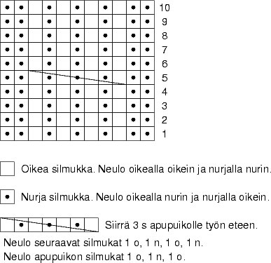 kohdalla neulotaan edelleen oikeat silmukat oikein ja nurjat nurin. Halutessasi