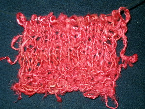 Langan neulominen oli mielenkiintoista. Langan olemus on rouhea ja neulepinnasta tuli kiinnostavan epätasaista. Lanka katkesi kerran ohuesta kohdasta ja aloin muistella, mitä langan laadusta sanottiin tilatessani, mutta en muistanut, olisiko se ollut kakkoslaatua. (Ostin langan jo pitkän aikaa sitten eBayn kautta amerikkalaiselta myyjältä.) Neuloin 6 mm puikoilla ja valmista syntyi nopeasti. Mitään kovin monimutkaista langasta ei kannata tehdä, koska kuviot eivät erottuisi neulepinnasta ja luulisin, että esim. palmikkojen neulominen voisi olla hankalaa, koska lanka ei ole kovin joustavaa.