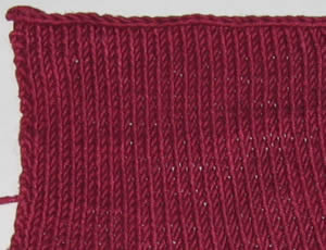 Vasemmanpuoleisesta kuvasta näet neuleen pinnan ja värityksen raidoittumisen.