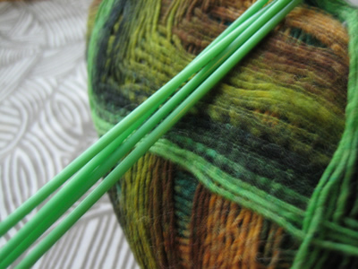 Syksyllä puikko-ostoksia tehdessäni huomasin myynnissä kaseiinista eli maitoproteiinista valmistettuja sukkapuikkoja ja päätin hankkia itselleni sellaiset kokeilua varten. Koska neulon pääosin ohuita sukkalankoja ja niitäkin vain pienillä puikoilla, päädyin kaikkein pienimpään saatavilla olevaan kokoon 2,25 mm (US 1). Puikot ovat normaalia pidemmät (23 cm), mutta setissä on vain neljä puikkoa.