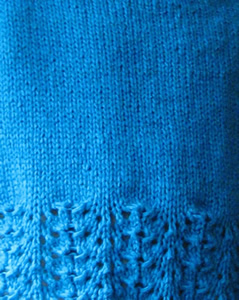 Sea Silk on kuitenkin miellyttävää neulottavaa. Ehkä osasyynä on langan upea väri, kiilto ja pehmeys, sillä lankaa voisi vain tuijottaa ja ihailla ja hiplata. Kovin tiukkaan lankaa ei kannata neuloa, sillä silkin takia se ei jousta yhtä hyvin kuin vaikkapa villa, toisaalta se on kuitenkin joustavampaa kuin 100 % silkkilanka. Valmis neulepinta tuntuu viileältä ja mukavalta ja laskeutuu kauniisti eivätkä värit läntity tai läikity rumasti.