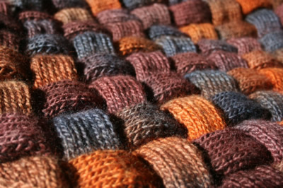 Neuloin langasta entrelac-suorakaidetta huiviksi, mutta totesin hyvin nopeasti, että löyhäkierteinen lanka ei tule kestämään huivina. Neuleen pinta nyppyyntyy tavallisessa käsittelyssä mielestäni turhankin nopeasti, ja neuleen pintaa nousee kevyttä nukkaa. Yksi syy ongelmaan on tarkoituksella löyhähköksi neulottu neulepinta.