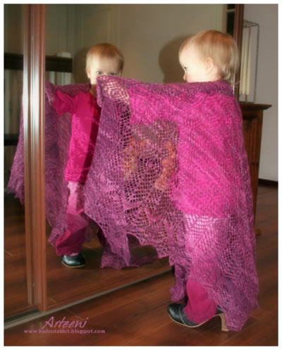 Huivin pitsikuviot ovat olleet suunnitteilla jo jonkin aikaa, mutta todeksi ne muuttuivat vasta, kun Secret Wool heitti haasteen: ilmaiset langat ohjeesta Ullaan. Tähän oli helppo tarttua, sillä nautin muutenkin sekä pitsihuivien neulomisesta että niiden suunnittelusta.