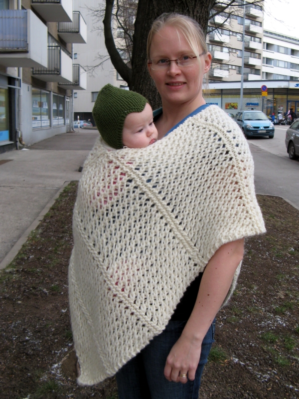 ja nopea neuloa. Ponchossa on suuri pääntie, joten se ei kutita kaulan herkkää ihoa ja sopii myös hyvin vauvaa kantoliinassa