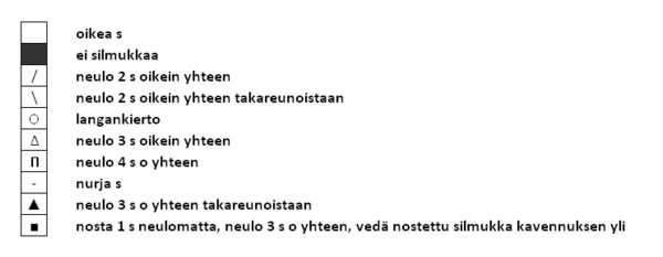 Huomaa, että silmukkamäärä ei pysy samana, vaan vaihtelee kaavion eri riveillä.