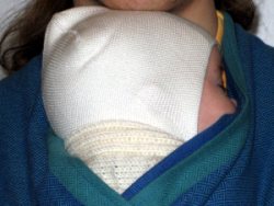 - Mitta A: vauvan olkapäältä (olkasaumasta) leuan alle kohtaan, johon kaulaliina kiinnitetään.