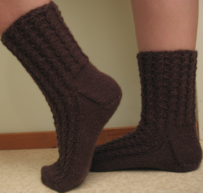 Käpyset sukat syntyivät, kun suunnittelin joululahjaksi sukat ystävälleni, joka pitää ruskeasta väristä. Valmiista sukista tulivat niin voimakkaasti mieleen männynkävyt, että sukista tuli siten käpyset sukat.