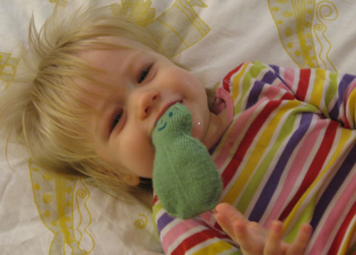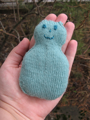Kun neuloin vaatelahjaa sukuun tulossa olevalle vauvalle, jäi yhtä lankaa puoli kerää tähteeksi. Ensimmäinen Nunnu syntyi tästä jämälangasta. Vaikka Nunnun on tarkoitus olla yksinkertainen pikkuvauvan ensilelu, myös omat yksi- ja kolmevuotiaat lapseni ihastuivat siihen, ja minun piti tehdä heille oma. Yllättävästi Nunnu viehätti myös hyvin iäkästä eikä yleensä enää lainkaan leikkisää kissaa. Lelu on siis hyvinkin monikäyttöinen.
