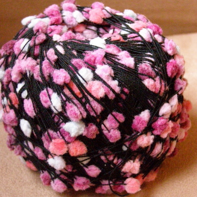 Ensimmäisenä siis Popcorn, joka on tekstuuriltaan varsin hupaisaa pallomaista, kuin popcornia langassa. Pompulat ovat pehmeitä ja langan neulominen on helpompaa kuin luulisi. Popcorn on valmistettu 100 % nylonista.