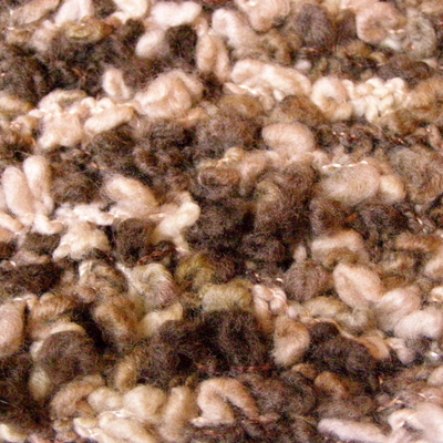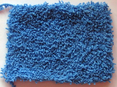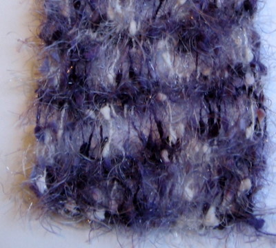 Lanka koostuu kahdesta erillisestä säikeestä: toinen säie on mohairmainen, toisessa langassa on muutaman sentin välein lenkkejä. Lanka on helppoa neulottavaa ja sopii moniin erilaisiin tiheyksiin. Olen aiemmin neulonut langasta huivin 12 mm:n puikoilla, tämä mallitilkku on neulottu 6 mm:n puikoilla. Lopputulos on pehmeä ja kevyt.