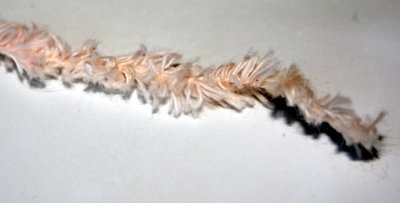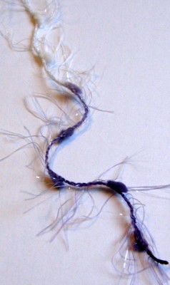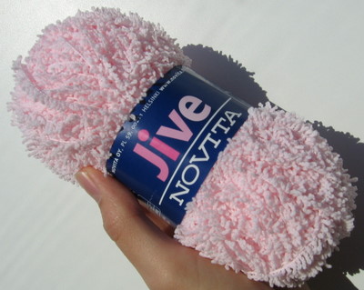 Colinetten Fandango on puuvillainen chenillelanka. Langan suosituspuikkoko on seitsemän, mutta koska itse neuloin pehmolelua ja muutenkin olen löysäkäsialainen, neuloin lankaa nelosen puikoilla. Chenille-lanka koostuu ohuesta keskisäikeestä ja siitä lähtevistä karvoista.