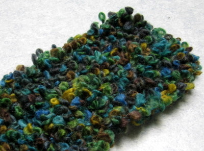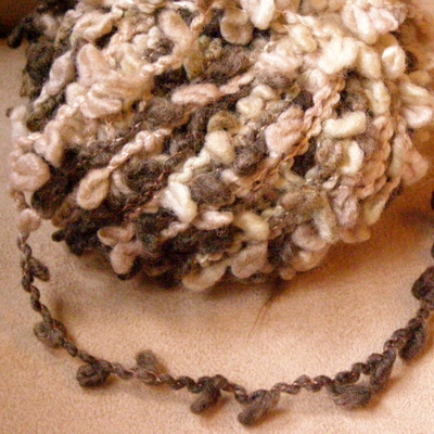 Sirdar Dune on hauskan näköinen lanka: ohuehkon peruslangan seassa on muutaman sentin välein suorakaiteen muotoisia palikoita.