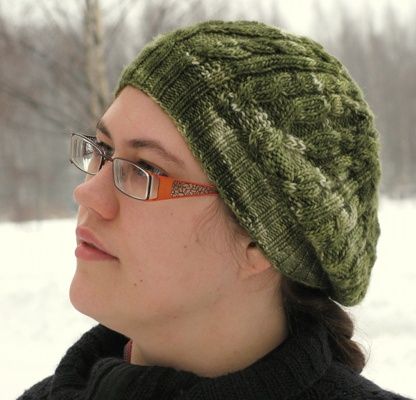 Ylellisen pehmeä Manos Silk Blend huuteli haluavansa päähineeksi. Koska minä olen niitä naisia jotka näyttävät tiukka pipo päässä lähinnä hölmöltä, tuli hattusesta itsestäänselvästi baskerimallinen. Palmikkoaiheet eivät tällä kertaa ole tarkan ennakkosommittelun tulosta, vaan työn edetessä improvisoidut.