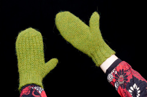 Sammaleiset syntyi halusta neuloa lapaset intialaisella peukalokiilalla ylhäältä alaspäin. Väri ja mallineulos yhdessä tuovat mieleen sammalmättään.