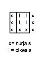 Neulo parittomilla puikoilla (1 ja 3) 1 o, lisäys, loput oikein. Neulo parillisilla puikoilla (2 ja 4) kunnes puikolla on vain yksi silmukka jäljellä. Tee lisäys ja neulo viimeinen silmukka oikein. Toista kunnes jokaisella puikolla on 11 silmukkaa.