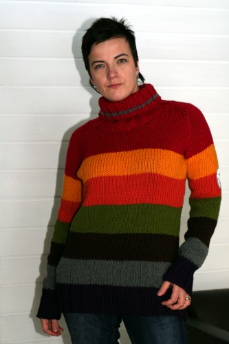 kysyttiin Ulla-blogissa. Minä leikin väreillä. Alkuperäinen idea syntyi syksyllä, kun syksyn uudet langat ilmestyivät kauppoihin. Lähikauppias oli laittanut Mambot niin herkulliseen värijärjestykseen, että niitä oli vaikea ohittaa. Tässä puserossa onkin lähes koko syksyn värikartta mustaa ja valkoista lukuun ottamatta. Lisäksi joukkoon eksyi joltain aiemmalta kaudelta peräisin oleva ruskea.
