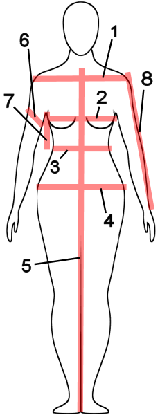 7. pituus kainalosta vyötärölle, tarvitset sitä selvittääksesi oman vyötärösi paikan