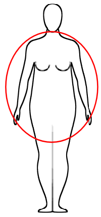 Esimerkki: Pyöreä tasapaksu vartalo (omenatyyppi)