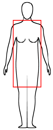Esimerkki: Rintava, lyhyt vartalo, suuri lantionympärys vyötäröön nähden (tiimalasityyppi)