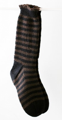 olisi jäänyt muuten vähän liian lyhyeksi, neuloin loppuun vielä muutaman kerroksen ruskealla. Sukan varsi on minulla kuitenkin enimmäkseen housun