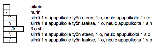 Voit tehdä kaavioissa olevat silmukoiden kierrot myös ilman apupuikkoa vaihtamalla silmukoiden järjestystä vasemmalla puikolla ennen niiden neulomista tai neulomalla ne suoraan vasemmalta puikolta kaavionmukaisessa järjestyksessä.