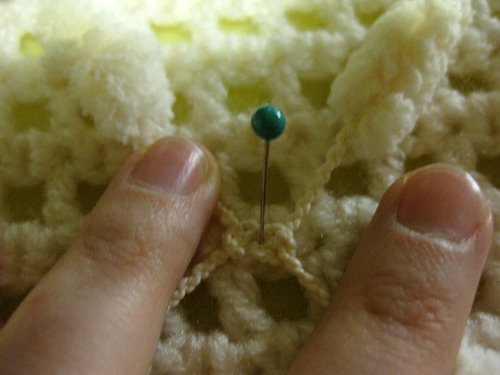 Kiinnitä solmu nuppineulalla alustaan.