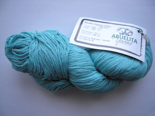 Abuelitan luonnonmukaisesti tuotettu puuvillalanka on käsinvärjättyä ja kotoisin Uruguaysta. Merseroimattomana se on myös helppoa neuloa. Vaikka lanka koostuu useasta säikeestä ja on pyöreäkierteistä, se ei silti pahasti halkeile neulottaessa. Lanka on hyvä valinta keväisiin asusteisiin ja vaatteisiin. Langan rakenteen ansiosta myös erilaiset pintaneuleet sopivat sille hyvin. Pesuohjeeksi vyyhdin etiketti suosittelee käsinpesua. Tämä vaikuttaa erikoiselta, sillä onhan kyseessä pesua yleensä hyvin kestävä puuvilla. Suositus saattaa kuitenkin liittyä värin säilyvyyteen. Käsinpesu on toki hellävaraisempi vaihtoehto hienosta langasta tehdylle neuleelle. Testivyyhti oli kirkkaan turkoosi, mutta värikartalta löytynee myös neutraalimpia värejä, joissa mahdollinen haalistuminenkaan ei todennäköisesti ole silmiinpistävää.
