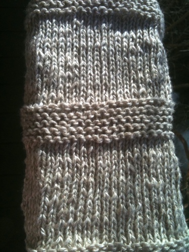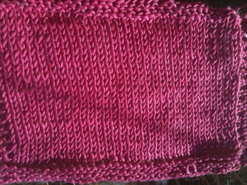 Langan paksuus vaihtelee, joten neulepinnasta muodostuu hieman muhkuraista. Lanka on silti melko helppoa neuloa ja se tuntuu erittäin pehmeältä. Lupaavasta ensivaikutelmasta huolimatta lankatestaajaa kohtasi pian suuri pettymys: raitalangan jokainen värinvaihtokohta on toteutettu solmimalla eriväriset langat yhteen. Solmut voi toki neuloa mukaa työhön, mutta itse en uskaltaisi luottaa niiden pitävyyteen. Ne saattavat aueta etenkin sellaisissa neuleissa, jotka altistuvat suurelle kulutukselle ja joita pestään usein. Kannattaakin siis miettiä tarkasti, minkälaiseen työhön langan käyttää. Mikäli päätät neuloa solmut mukaan työhön, kannattaa ne testata ennen neulomista vetämällä voimakkaasti.