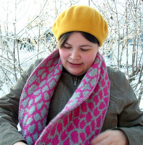 onteloneuleeseen. Ihastuin ideaan kaksipuolisesta neuleesta, jossa eri puolet ovat väreiltään toistensa peilikuvia. Tekniikka
