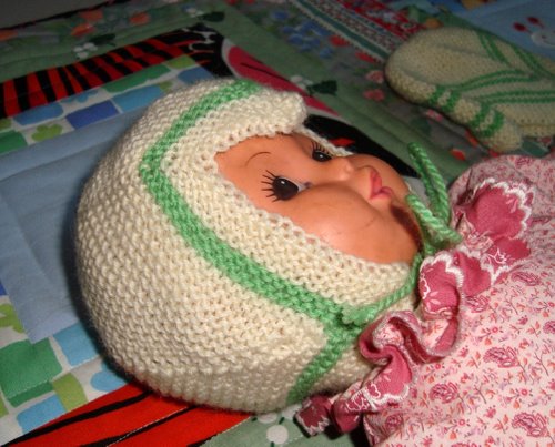vauvanmyssy, johon jokainen on varmaan joskus törmännyt. Perinteinen myssy neulotaan aina