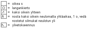 pitäisi kuitenkin osua kaaviosta joko kaksoiskavennuksen keskikohta tai langankiertojen välinen oikea silmukka. Kaaviossa