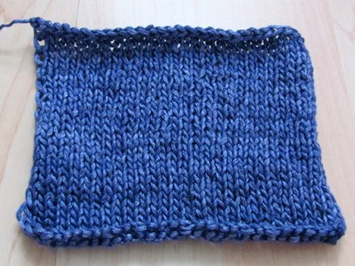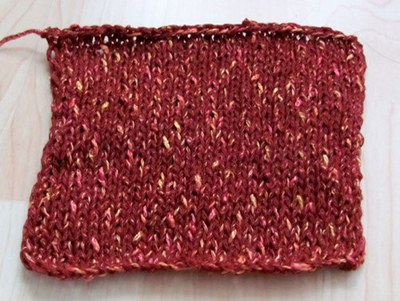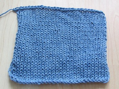 Neuloin mallitilkun 4 mm puikoilla. Neuletuntuma oli ihan miellyttävä, mutta syntynyt neulepinta näyttää makuuni turhan harvalta. Se sopisi ehkä kesäiseen huiviin, mutta paita- ja neuletakkikäytössä kaipaisin tiiviimpää pintaa. Mallitilkun tiheys on kuitenkin käytännössä vyötteen suosituksen mukainen (21 s ja 28 krs), joten langan puikkosuositus tuntuu ehkä hiukan suurelta. Vastaavasti itse pitäisin myös hiukan tiiviimmästä neulepinnasta eli kasvattaisin tiheyttä, mikäli lankaa tulisin myöhemmin käyttämään.