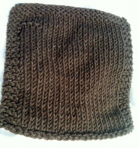 Neuloin mallitilkun suosituksen mukaisilla 3,75 mm puikoilla, joilla pääsinkin juuri vyötteen ohjetiheyteen. Yleisesti ottaen käsialani on hiukan löysää, joten puikkosuositus tuntuu ehkä aavistuksen turhan suurelta. Suositustiheys puolestaan tuntuu langalle oikein sopivalta ja syntynyt tilkku on neulevaatteeksi juuri sopivan peittävä, mutta silti vielä laskeutuvan oloinen.