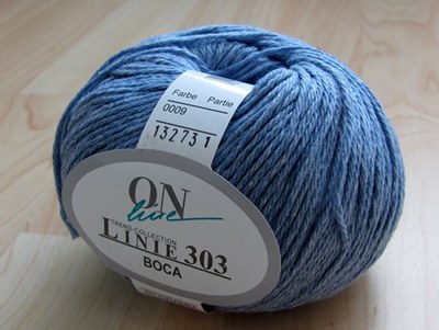 Onlinen uutuuslanka Boca on pehmeä 4-säikeinen puuvillan, polyamidin ja kashmirin sekoitus. 50 gramman kerillä myytävä Boca on mukavan riittoisa, sillä kerällä on 185 metriä neulottavaa. Lanka tuntuu heti kerällä puuvillasekoitteeksi yllättävän pehmeältä ja muhkealta, eikä neuletuntuma tästä poikkea. Lanka on erittäin miellyttävää neuloa, joskin kovin terävillä puikoilla se saattaa hiukan halkeilla. Tämä ei kuitenkaan muodostu minkäänlaiseksi ongelmaksi, varsinkaan jos langalle valitsee hiukan tylpempikärkiset puikot. Syntyvä neulepinta on kauniin tasaista ja pehmeää, enkä usko että tämä lanka kutittaa juuri ketään!