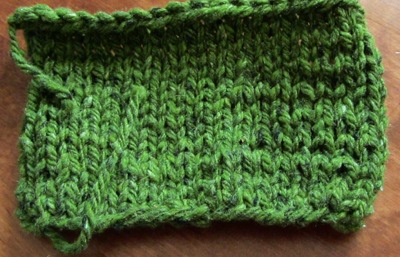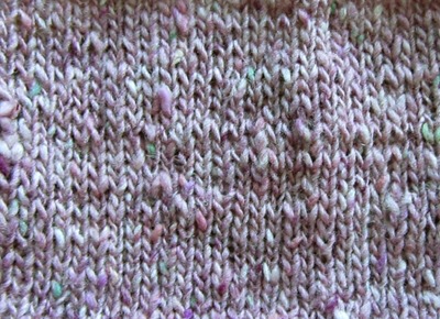 Tweed on yksisäikeinen lanka, ja kuten mallitilkussakin näkyy, on neulos hieman toispuoleista. Pitsiä tai muuta vaativaa mallineulosta neuloessa kannattaakin testata ensin, kuinka kuvio käyttäytyy yksisäikeisen langan kanssa. Säiettä on ilmeisesti hieman huovutettu valmistusprosessissa, joten lanka pysyy hyvin kasassa, eikä mallitilkku vaikuta nöyhtäävän herkästi. Langan neulominen on samasta syystä miellyttävää, sillä lanka ei erityisesti halkeile tai takertele.