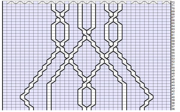 Kun olet neulonut kaavion kerroksen 70, jatka kuvion neulomista kerroksen 18 mukaan. Luonnollisesti lisäykset jätetään