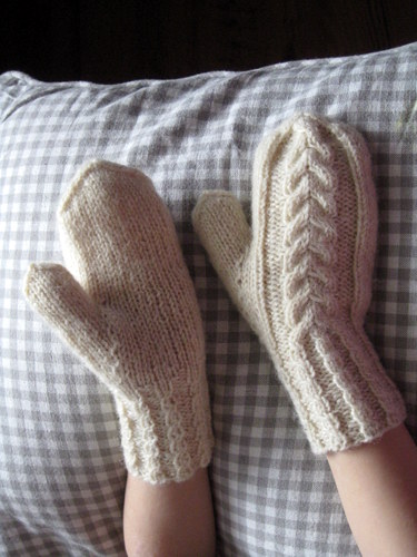 Lapsille tulee usein neulottua käytännöllisiä peruslapasia esimerkiksi jämälangoista kurarukkasten alla käytettäviksi. Tällä kertaa halusin tehdä tyttärelleni lapaset, joita ei pidetä pihaleikeissä vaan ainoastaan kyläillessä, kaupoilla tai vaikkapa joulukirkkoon mennessä. Materiaaliksi halusin ehdottomasti valkoisen suomenlampaan villalangan sen ihanan tunnun, lampaan tuoksun ja ekologisuuden vuoksi. Peukalokiilan ansiosta lapaset istuvat hyvin pieneen käteen. Kauniit, palmikoilla koristellut lapaset kelpaavat vaikka prinsessalle.